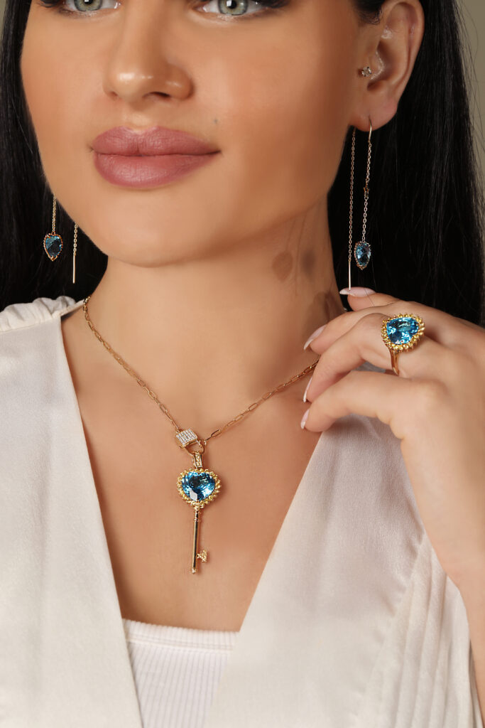 Promising to bring happiness through the beautiful topaz stone which is the signature of the brand and the symbol of prosperity and abundance